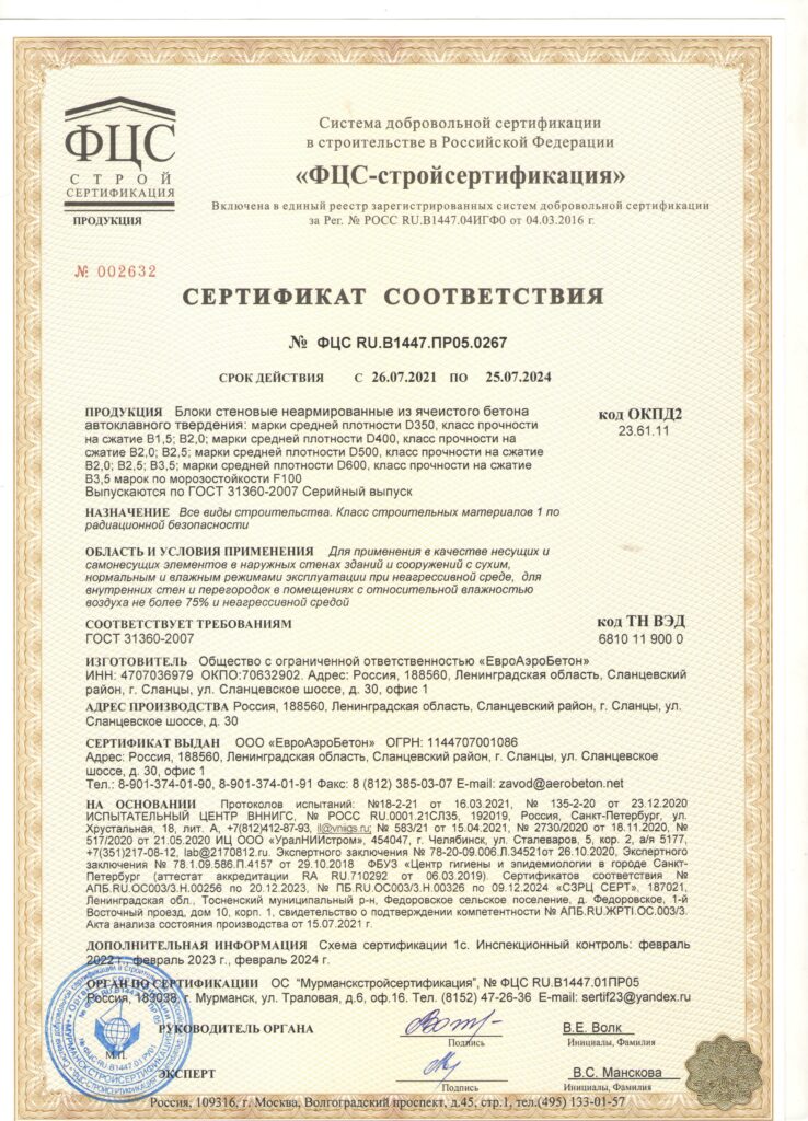 Сертификаты на газобетонные блоки